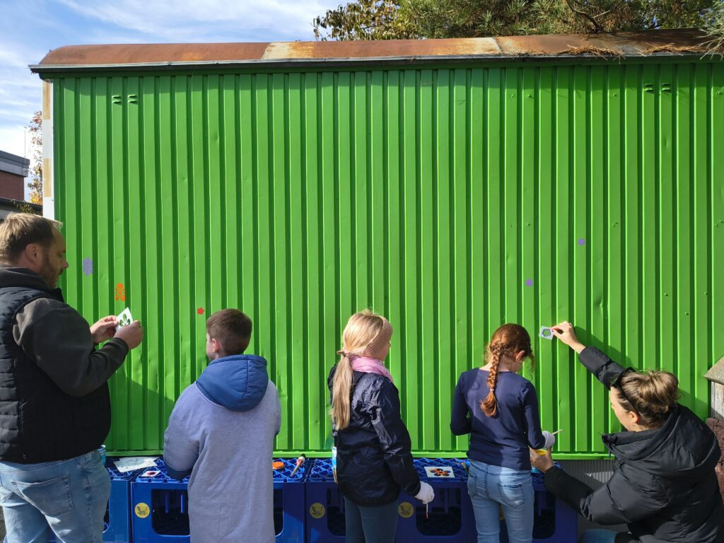 Heute durfte die Klasse 3a unter der Anleitung von Familie Oppinger den Bauwagen im Schulgarten verschönern. Passend zum Garten wurde dieser mit bunten Blumen geschmückt. Eifrig malten die Kinder mit Pinseln die verschiedenen Vorlagen aus.