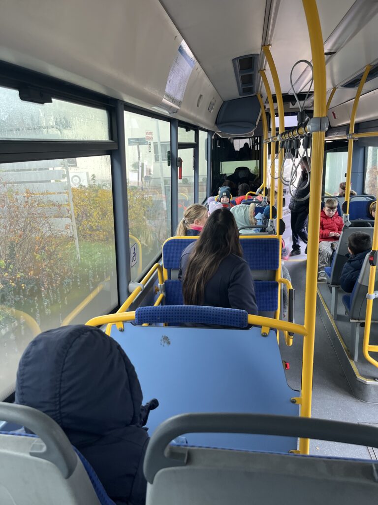 Zuerst erklärten die Gäste, wie man sicher ein- und aussteigt, warum man während der Fahrt sitzen bleiben sollte und was wichtig ist, um Unfälle zu vermeiden. Anschließend konnten die Kinder den Bus aus nächster Nähe erkunden und alle ihre Fragen stellen – vom Notfallknopf bis zum Fahrplan.